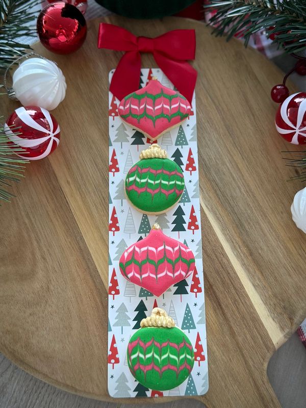 This delicious pack includes 4 mini vanilla Christmas bauble cookies. Perfect for gifting, sharing, or sneaking a bite while wrapping those gifts.
